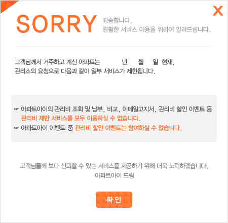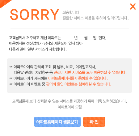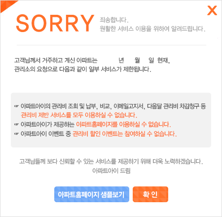ȸ¿ø´ÔÀÇ ´ÜÁö °ü¸®»ç¹«¼Ò¿¡¼­ ¾ÆÆÄÆ®¾ÆÀÌ ¹«·áÁ¦°ø ȨÆäÀÌÁö¸¦ ¿î¿µÇÏÁö ¾ÊÀ» °æ¿ì, ȨÆäÀÌÁö¸¦ ÀÌ¿ëÇÒ ¶§ ¾î·Á¿òÀÌ Àְųª ÀÌ¿ë ÀÚü°¡ ºÒ°¡ÇÒ ¼öµµ ÀÖ½À´Ï´Ù.