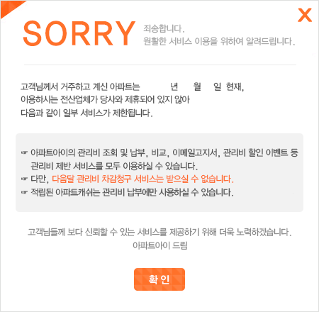 ¾ÆÆÄÆ®¾ÆÀÌ¿¡¼­ °ü¸®ºñ ³³ºÎ¸¦ ¿øÇϽô °æ¿ì ¸ðµç ÀÚµ¿ÀÌü°¡ ÇØÁöµÇ¾î¾ß ÀÌ¿ëÀÌ °¡´ÉÇÕ´Ï´Ù.